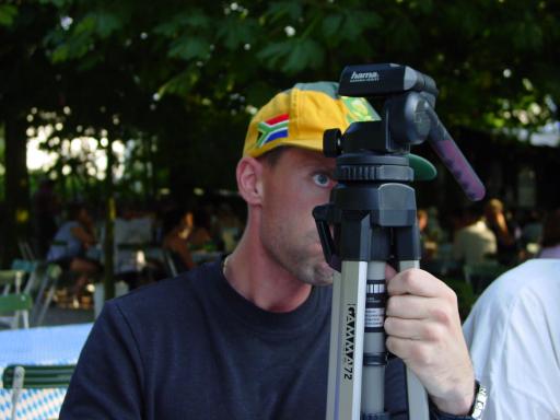 Die Flugbahn wird fachmännisch vermessen ... (mit dem Hama-Würstchen-Theodolithen) |